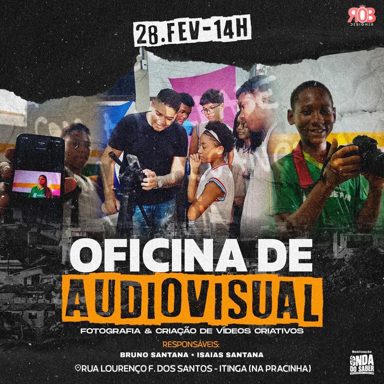 No próximo dia 28 de fevereiro, às 14h, a comunidade de Itinga, em Lauro de Freitas, será palco da Oficina de Audiovisual & Criação de Vídeos Criativos, uma ação formativa aberta ao público e realizada em espaço público, fortalecendo o acesso democrático à cultura e à comunicação.